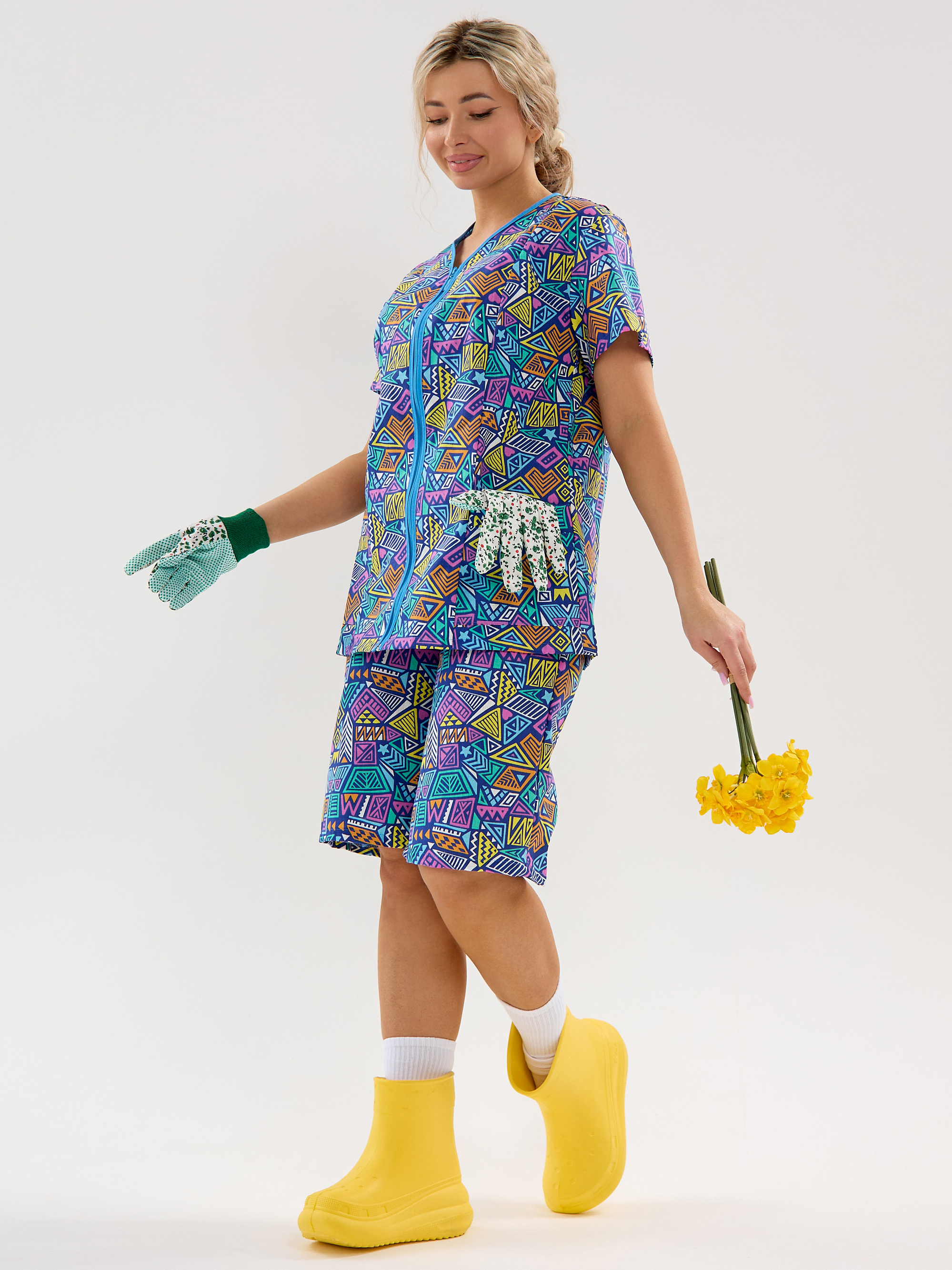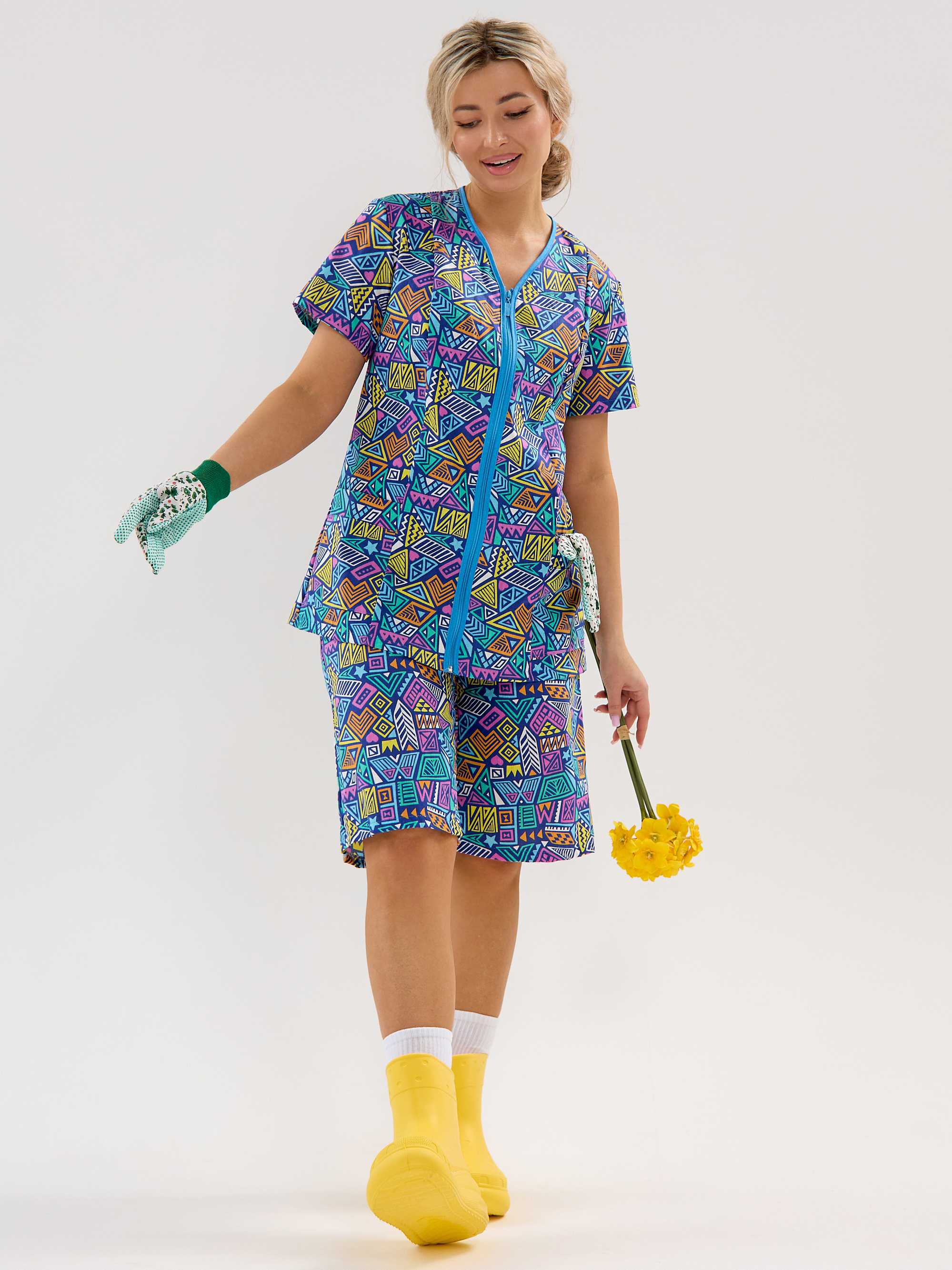 Женский дачный костюм из бязи, кофта на молнии с коротким втачным рукавом и карманами, шорты ниже колена на резинке. Натуральный 100% хлопок, дышащая ткань, тело будет дышать даже в самый жаркий день, свободный крой не будет сковывать движений. Яркий принт красные маки подчёркивает женственность. Идеален для дачи, огорода, дома, отдыха на природе, а также для путешествий и поездок на море. Шорты с комфортной посадкой поэтому будет удобно наклоняться и работать в огороде. Костюм домашний бязевый подходит для дел по дому, уборки и отдыха. В глубокие практичные карманы поместятся семена, перчатки, пара морковок «на перекус» и даже телефон с ключами, а также разные мелочи. Костюм женский летний прост в уходе, бязь устойчива к частым стиркам, хорошо держит форму.