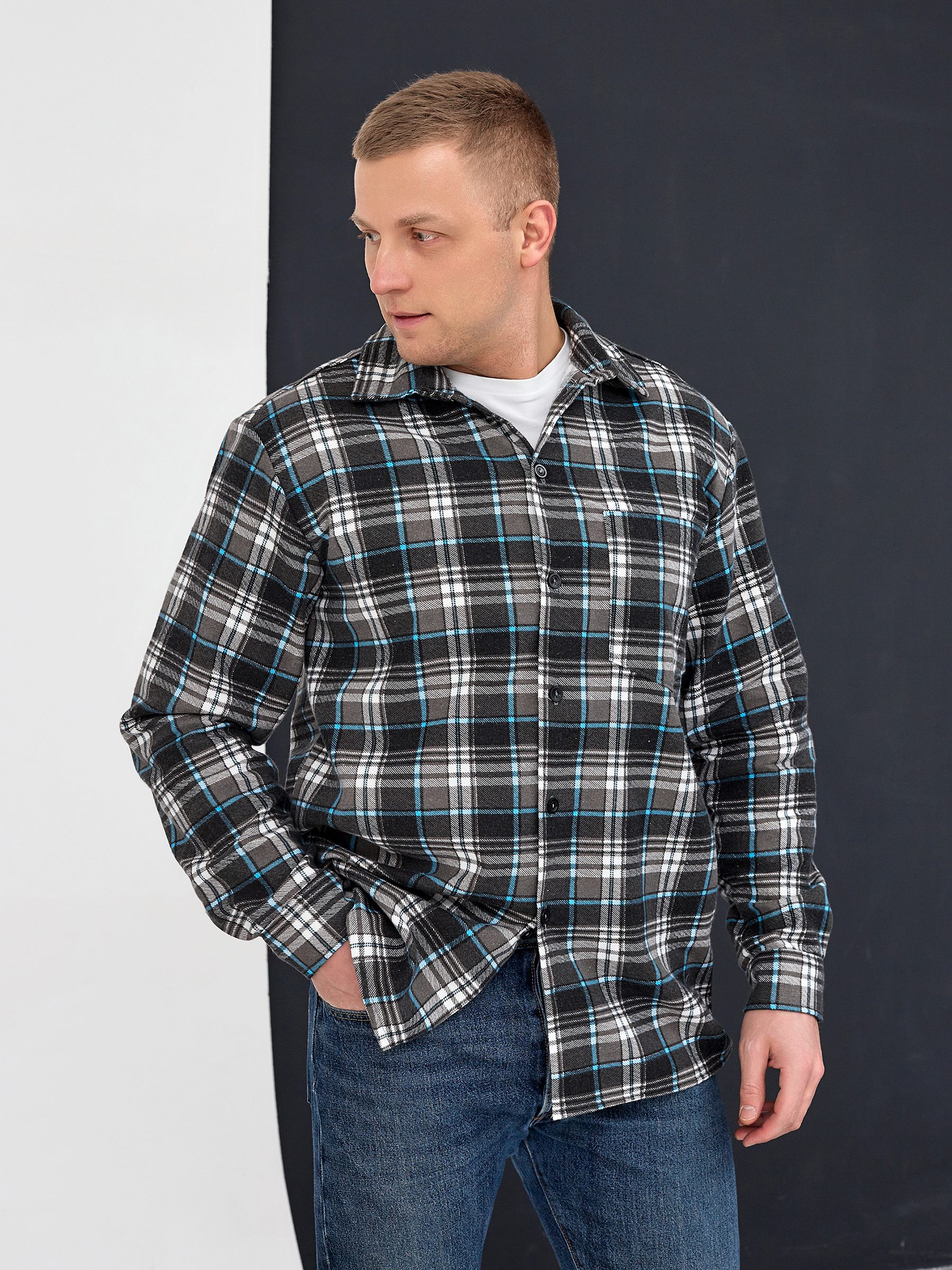 Рубашка фланелевая больших размеров на пуговицах.