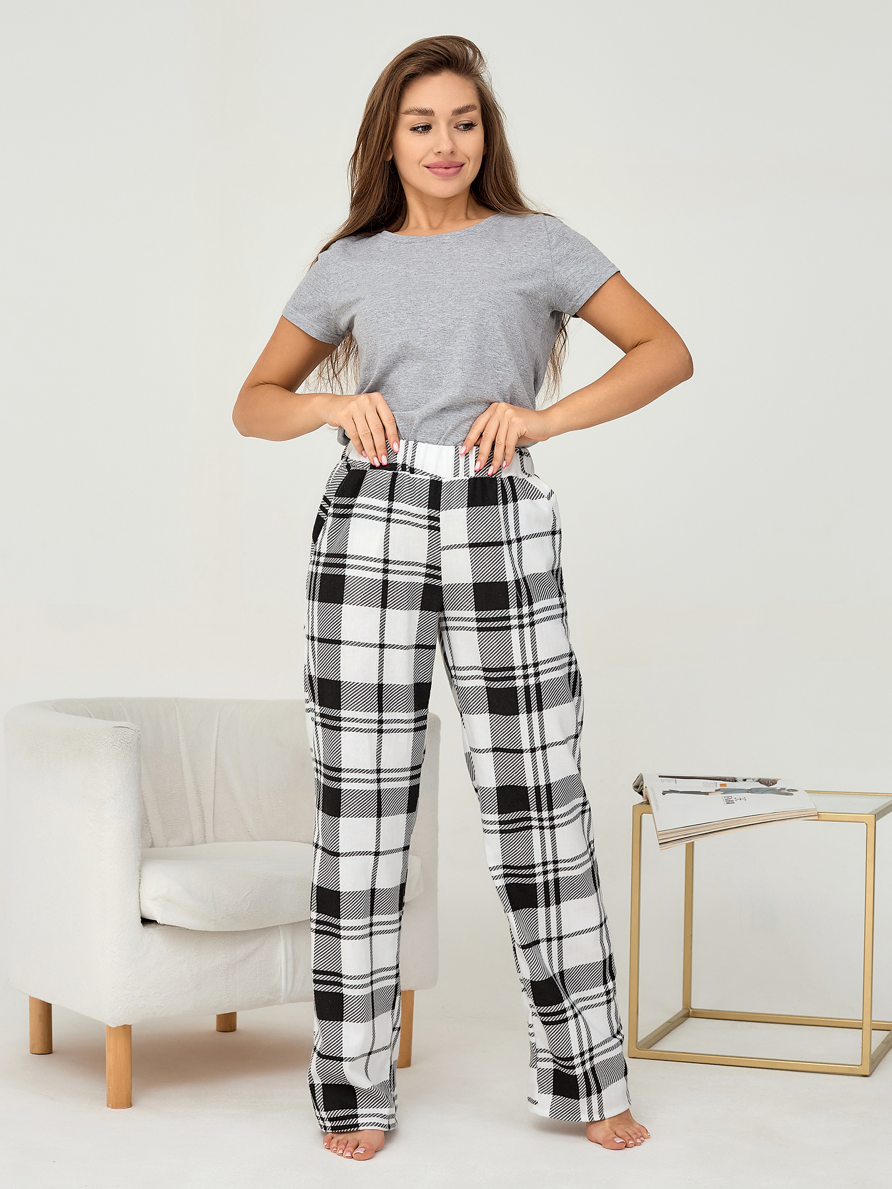 Брюки женские фланелевые пижамные с карманами на резинке, выполнены из натурального 100% хлопка – мягкая фланель. Штанишки домашние  мягкие и приятные к телу.