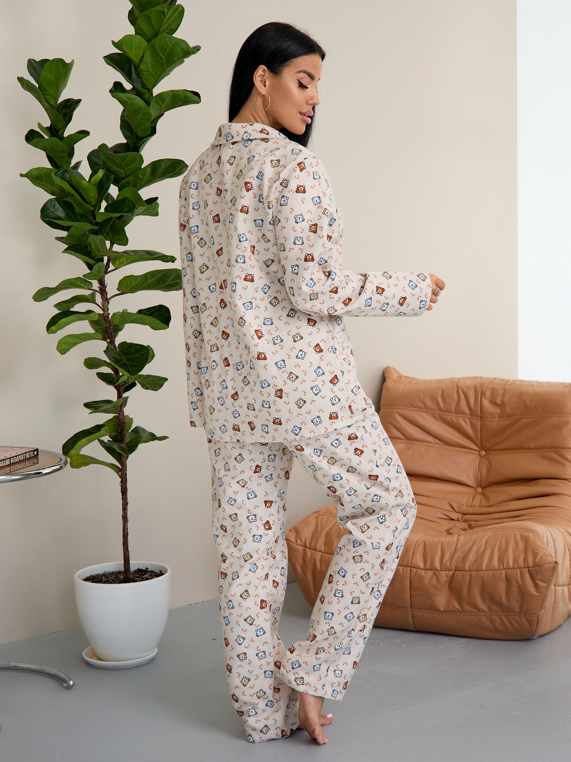 Комплект для сна имеет красивый принт, который подойдет любой женщине, девушке и создаст прекрасное настроение перед сном. Приятные и мягкие штаны и рубашка на пуговицах из фланели сохраняют тепло и позволяют телу дышать. Комплект фланелевый байковый подходит для высокого и невысокого роста благодаря свободному крою и большим размерам, позволяет свободно двигаться и чувствовать себя комфортно в любом положении.
