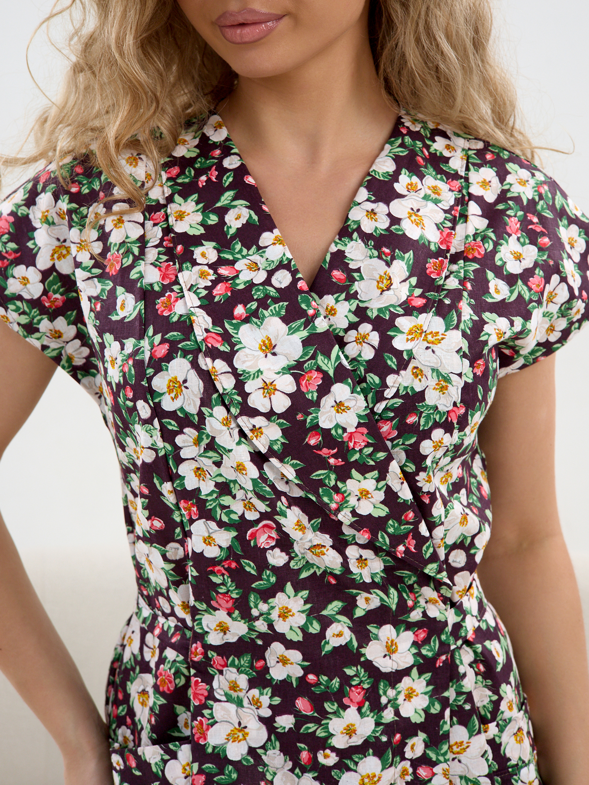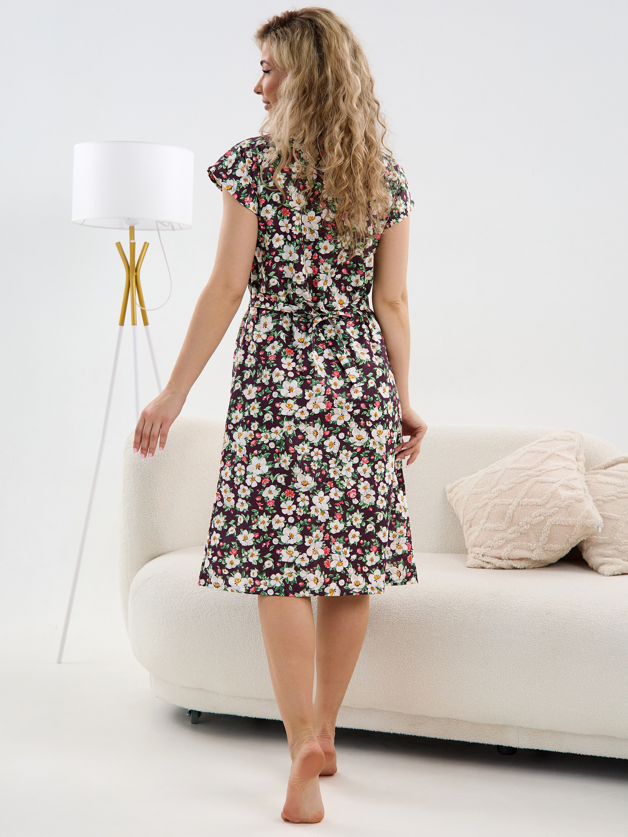 Халат домашний бязевый от компании Лето-Текс, выполнен из натурального хлопчатобумажного материала из бязи - 100% хлопок. Ткань бязь изначально жесткая, после стирки становится мягче. Халат женский на запах с накладными карманами и спущенным плечом. Халат запашной ниже колена, рост модели на фото 165 см., а ростовка халата 170см. Достоинствами такого халата для дома являются его экологичность и безопасность, он не вызывает аллергии, кожа в нем дышит, а влага впитывается. Домашний халатик отлично подойдет для дома, надеть с утра или после ванны, не сковывает движений и отлично сидит по фигуре и подчеркивает талию. Халат летний женский длинный с коротким рукавом подойдет для беременных роддома, для кормления грудью, для кормящих мам. Халат больших размеров хороший подарок на день рождения 8 марта для мамы и бабушки. Халат рабочий отличный вариант для дачи и в качестве униформы.
