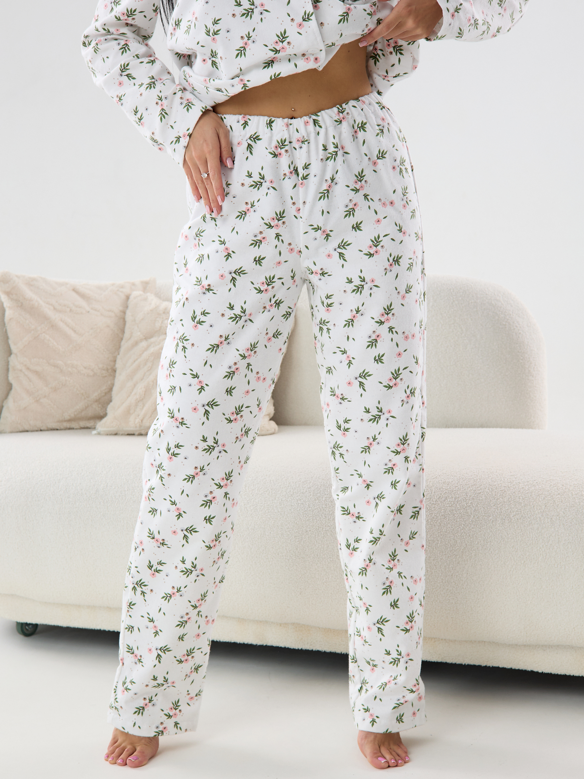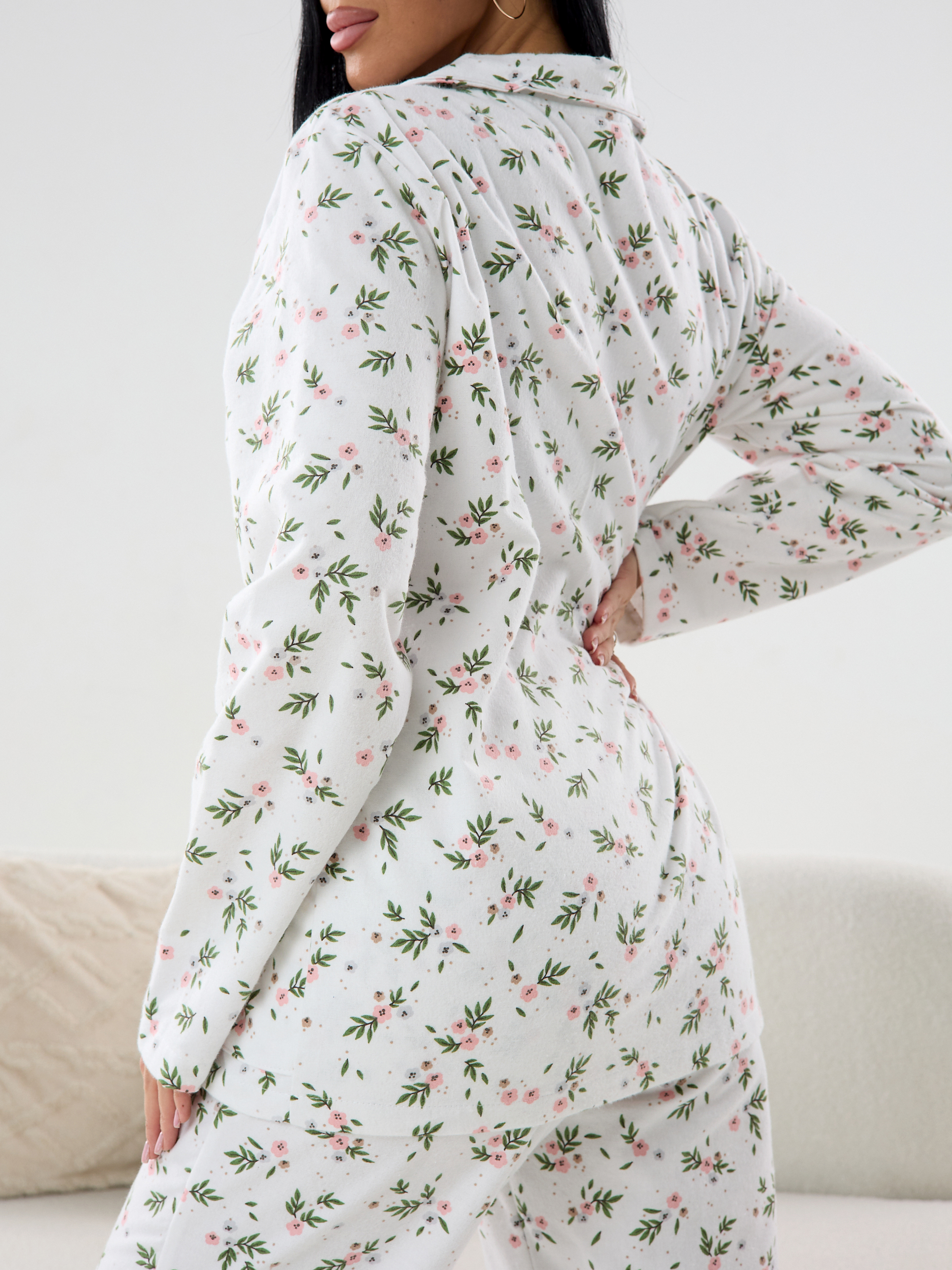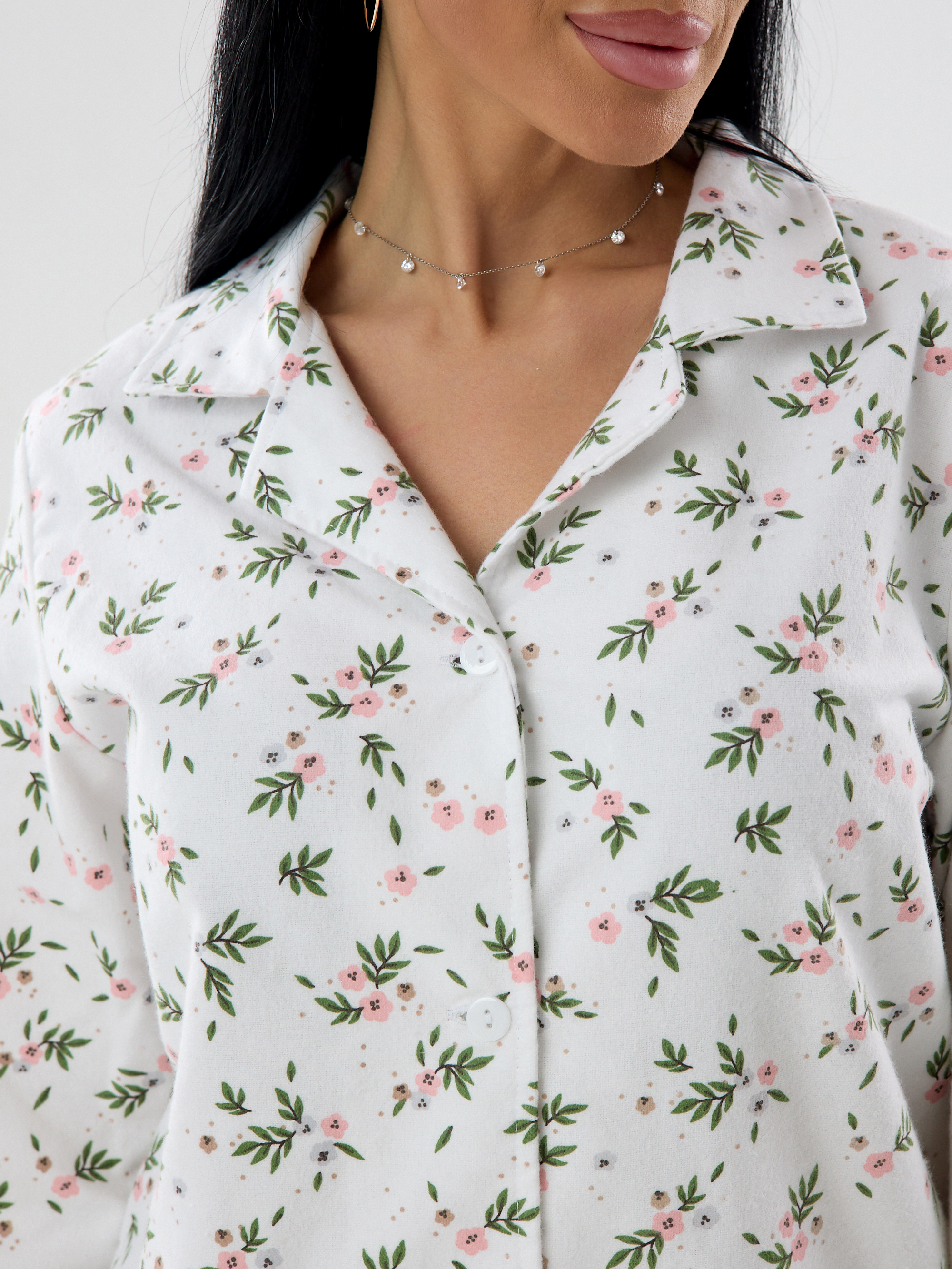Женская фланелевая пижама с брюками. Этот прекрасный набор из приятного на ощупь хлопка станет идеальным спутником в холодные дни. С начесом и длинным рукавом, он согреет вас и обеспечит невероятный комфорт на протяжении всей ночи.